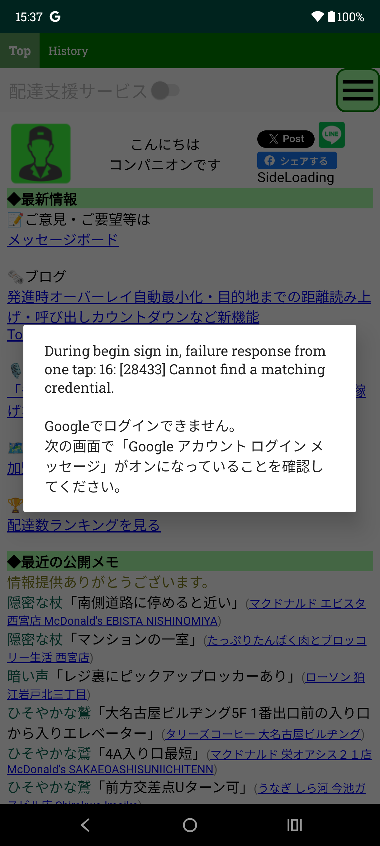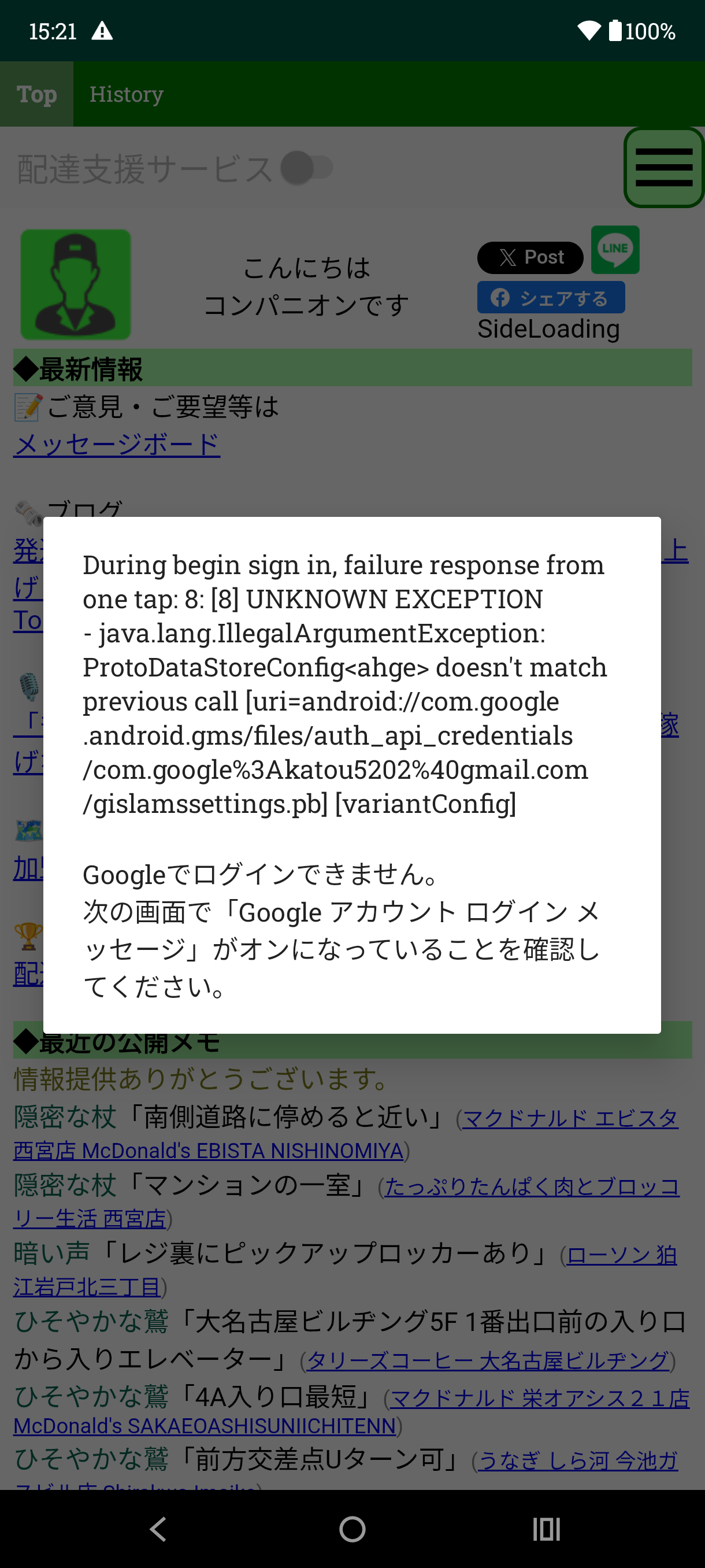 お世話になってます 端末を新しくしてコンパニオンを入れたのですが サインイン出来なくて困っています サインインしようとすると添付のような画面が出てきてしまいます ![]() |